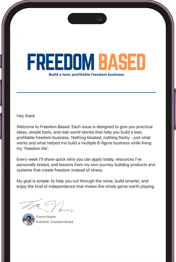 That's why I created Freedom-Based. I share the playbooks, essays, and frameworks that helped me go from freelancer to freedom-based business owner.